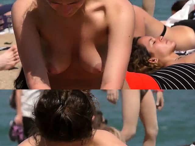Nice brunette woman Topless Beach Voyeur Public Nude