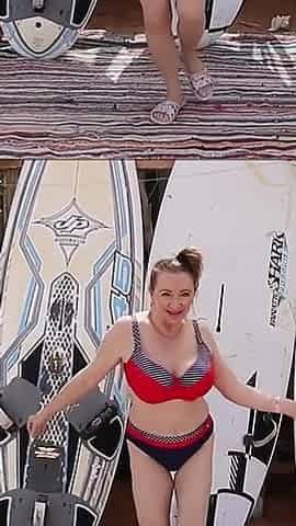 On the beach my wife shows off in a bikini and begins touching herself very lewd