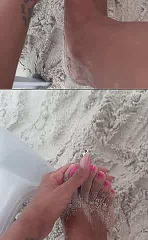 My feet and masturbation with climax and soaked cunt close up on the beach