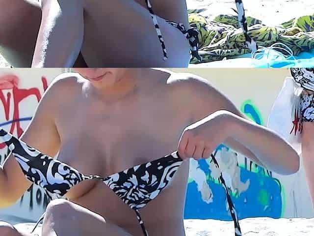 Sexy Mini Bikini Flashing on the Tropical Beach