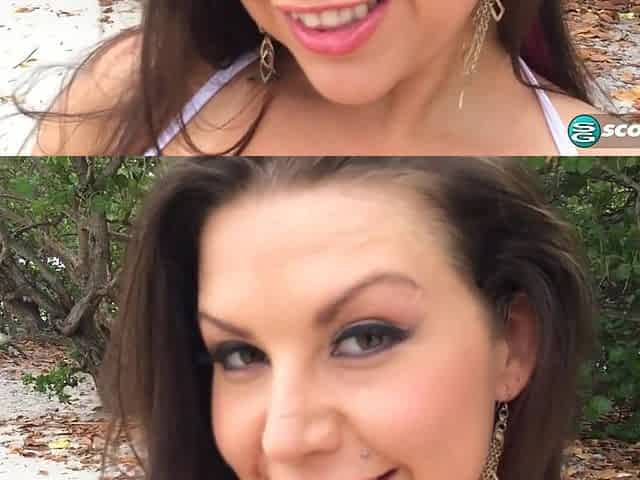 Scarlet Chase enjoys while pleasuring her pussy on the beach