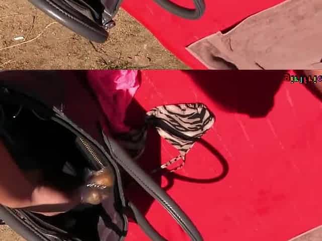 Super hot Latina Cxlila Myers gets caught playing with a fucktoy on a nudist beach