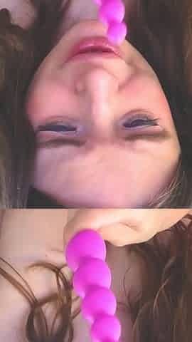 CUTE LUSTFUL CUTIE TAKES GIANT ANAL BEADS. CLOSE UP