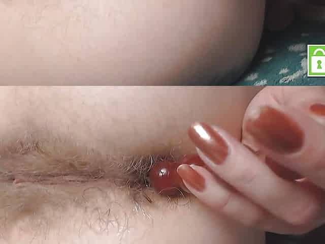 "Close up playing with different. Pushing out anal beads without hands from sexy hairy asshole"