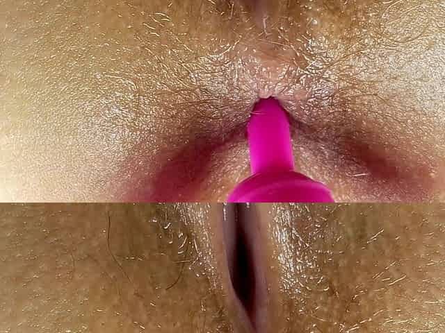 Drilling her lesbo anal canal with a rotating dildo that stimulates the ass as well