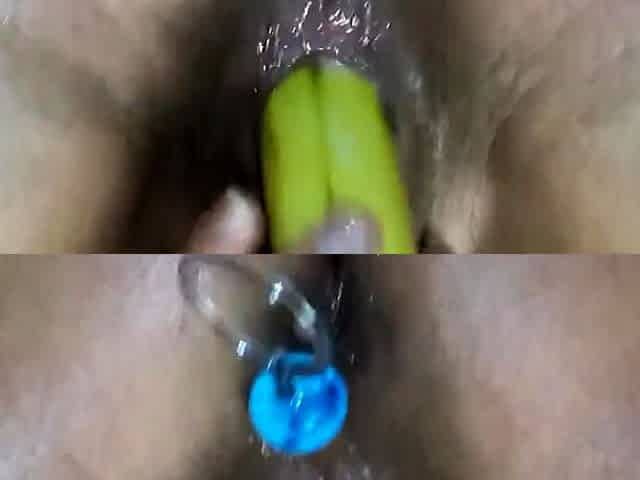 Amateur Milf Squirting fucking a Banana with Anal Beads