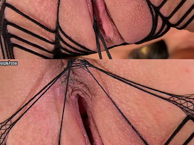 Yummy Canadian brunet babe Foxy Prissy is playing with vaginal beads