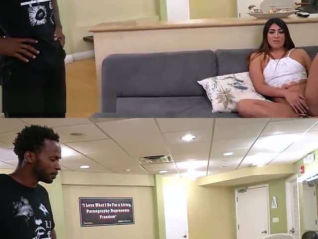 Latina girl Janeva beads mouth and pussy on cock