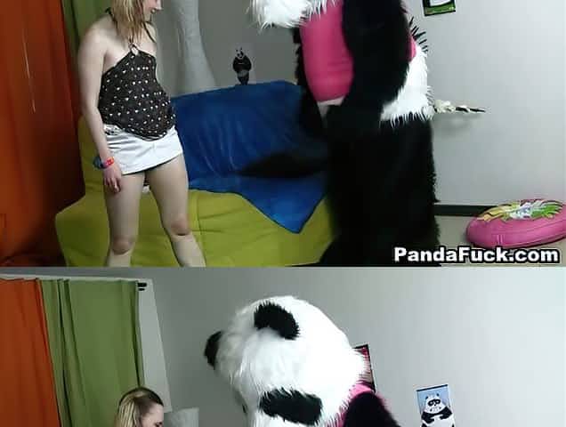 Dude dressed as a Panda bear fucks blonde pornstar Cory Chase