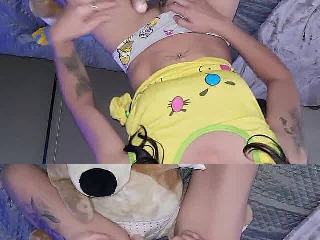 Angel eighteen pees with her teddy bear