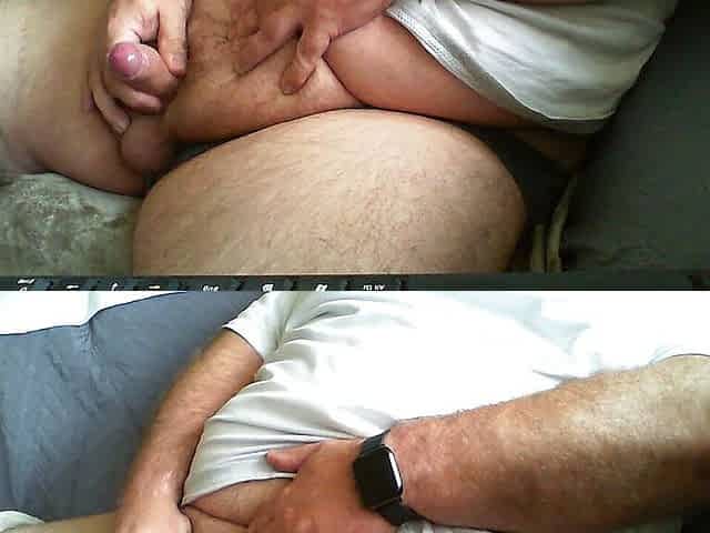 Hairy Daddy bear jerks off his fat cut boner on cam