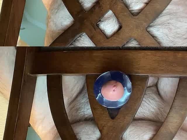 XXL Leather jockstrap filling up with 1380CC silicone meat