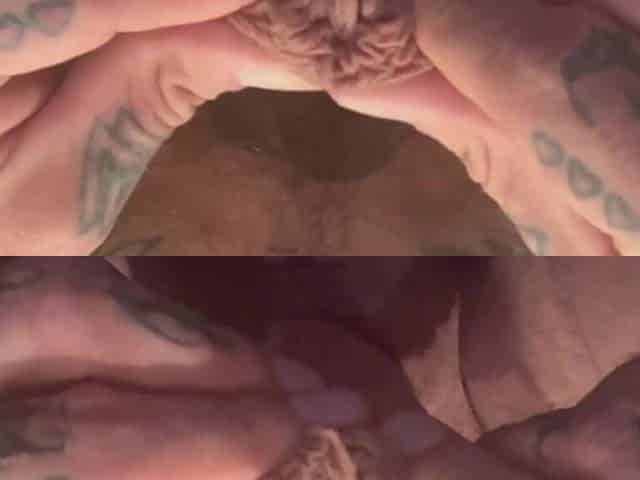 Hairy bear jerks his fat cock, huffs, heavy ballstretcher