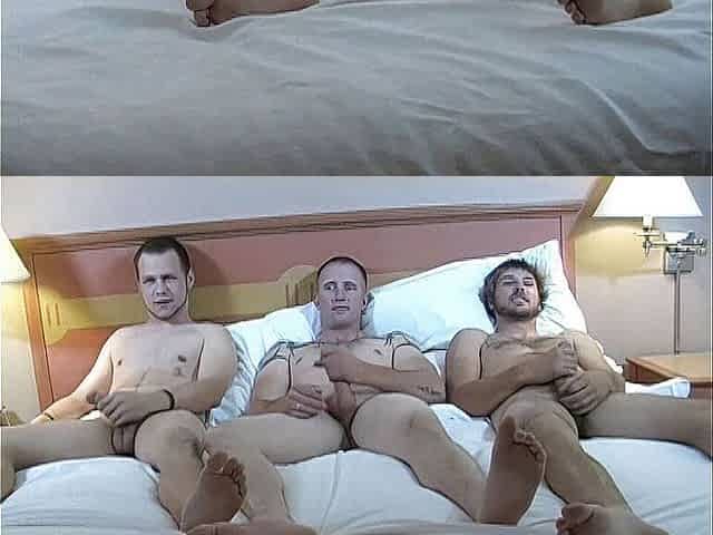 Two nasty gay dudes take on each others stiff boner in the bedroom