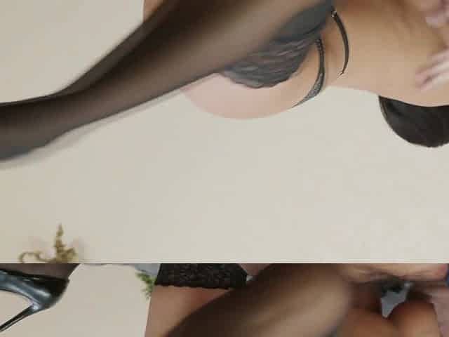 Beautiful and hot brunette with a big tail moaning and cumming, giving her pussy and very tasty spit: Porn