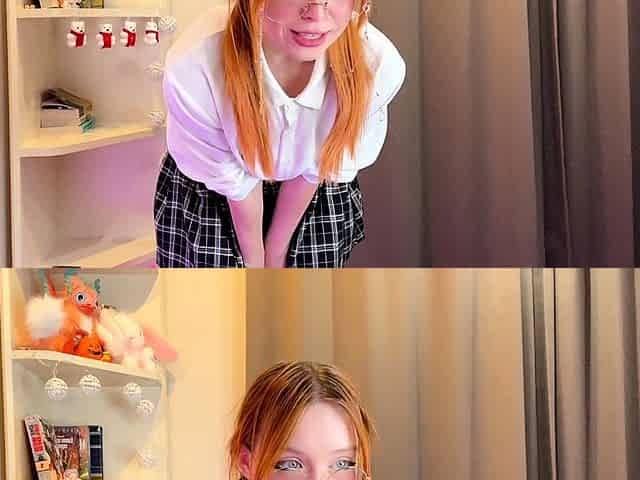 Petite amateur redheaded teen pisses and sucks cock