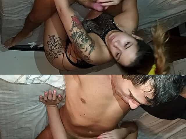 Tattooed teen fucked from his big cock and milked in mouth