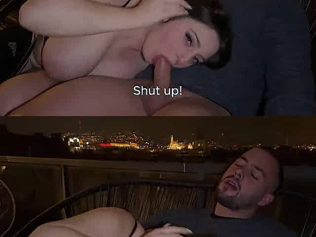 Homemade movie scene with pretty slim wife