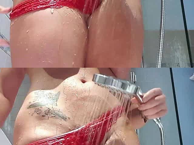 cute white beauty fingering twat in red underware