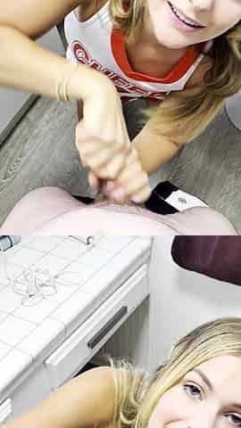 Sexy beauty with a large booty giving head on the kitchen sink!
