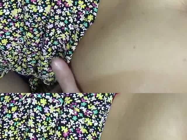Small titted brunette teen fingering on the bed