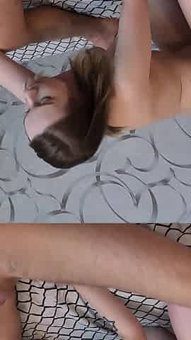 Step Mamma Masturbates Next to Step Son on Bed Untill Wild Bang
