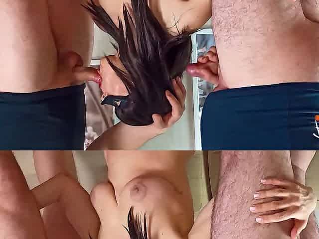 Wife Gives Double Blowjob with Cum in Mouth. Threesome. Full Scene. Ep 1231