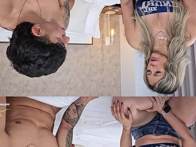 Sharing is caring. PAWG stepmother shares the hotel bed and her pussy with a stepson