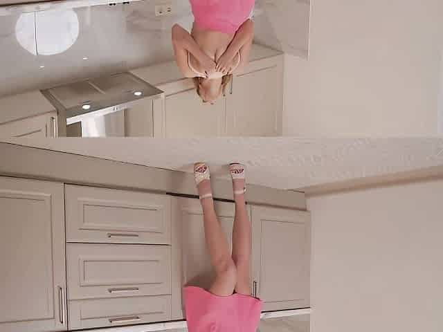 Sensual kitchen solo masturbation with a big-boobed Zoe Demas