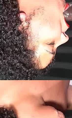 Black Slut with Colored Hair Sucks a Real Big Black Cock