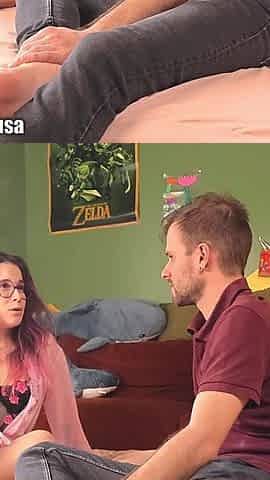 I Love to See My Stepbrother on the Couch Getting His Cock Out and I Take Advantage and Suck His Cock