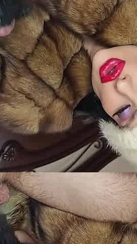 Furjob, Lipjob, Bootjob and Hairjob From Sexy Bimbo in a Sable Fur Coat, Cum on Leather Gloves
