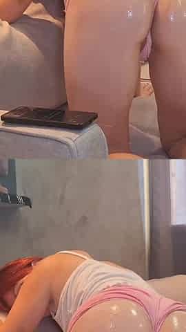 Redhead Shows off Riding Position Nude in Shirt