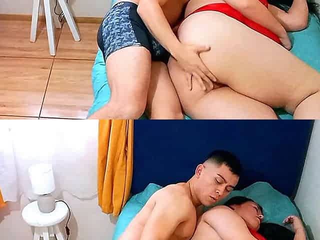 Step mom shares bed, plumper