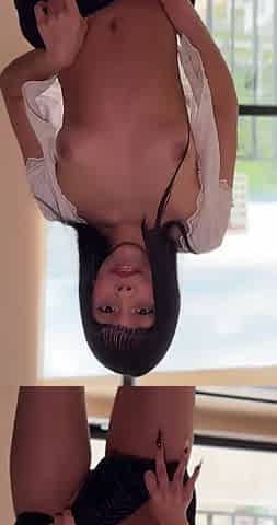 Girlfriend Masturbating and Spanking in Black Leggings and Panties