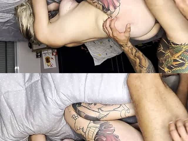Sexo assfuck intenso e duro de quatro, estilo rodeio com uma garota tatuada.
