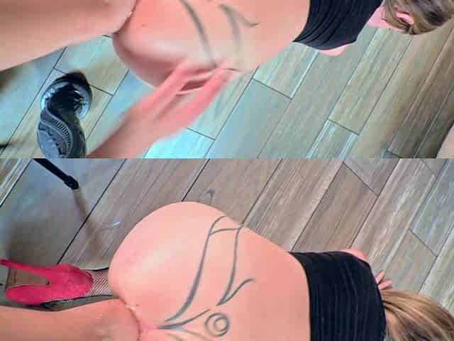 Large butt t-girl jiggling large ass all over the place with booty plugg