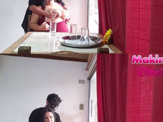 Steamy hookup with a couple featuring a hot Latina in cowgirl style