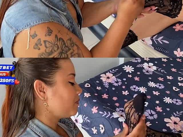 ¡Mi hermanastra me hace un Foot job y termina con delicioso creampie!