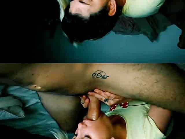 Emo star floozy, Victoria Voxxx, sucks and licks her way up and down Nade Naughty's enchanting candy stick.