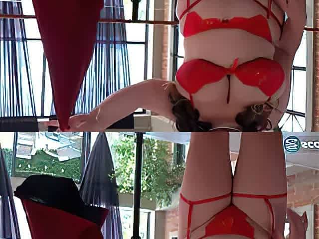 Wearing high heels and catsuit and taking a shlong down my throat and vagina in gloryhole