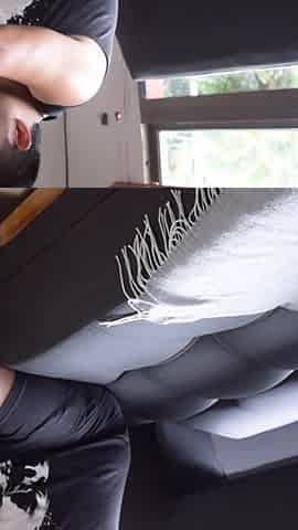 My perverted stepson fucks me ANAL on the couch while his dad is home
