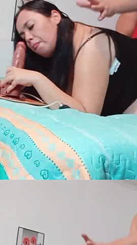 Examen fellatio para aprobar el examen, puta culona se pone cachonda y me corro en su lengua