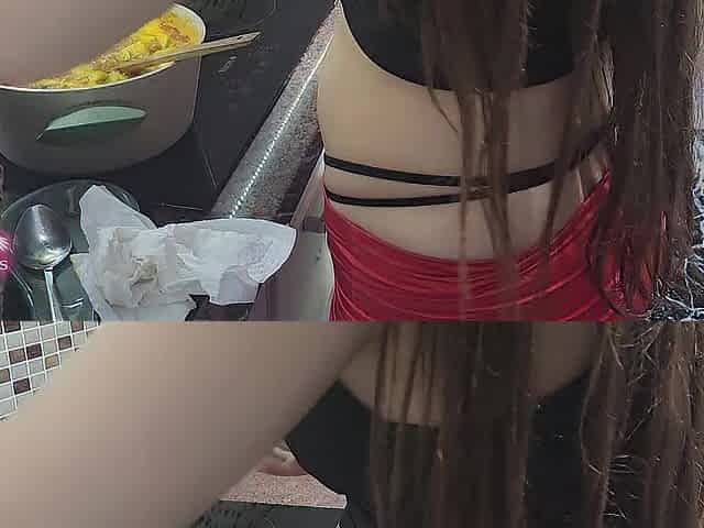 My stepdaughter was tidying the kitchen, I couldn't resist with her booty!
