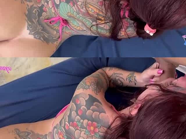 Agatha Vega and Nicole Doshi warm up giving a kiss until Christian joins in