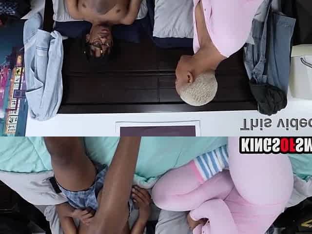 Concupiscent ebony teen stepsis Harley Dean test her stepbro's massive rod