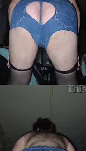 A overweight-assed homo guy strokes him in ripped denim shorts and ebony nylons!