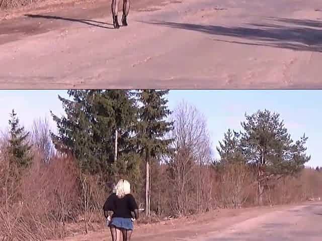 Jeans petticoat and ebony hose-Hot walk large butt two