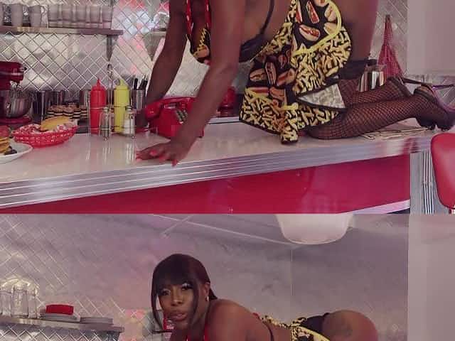 Black waitress with gigantic boobs Mystique gets nasty and finger fuck pussy
