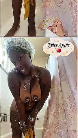 Large BUTT Black bangs her booty in the shower whilst her roommate is in the next room!